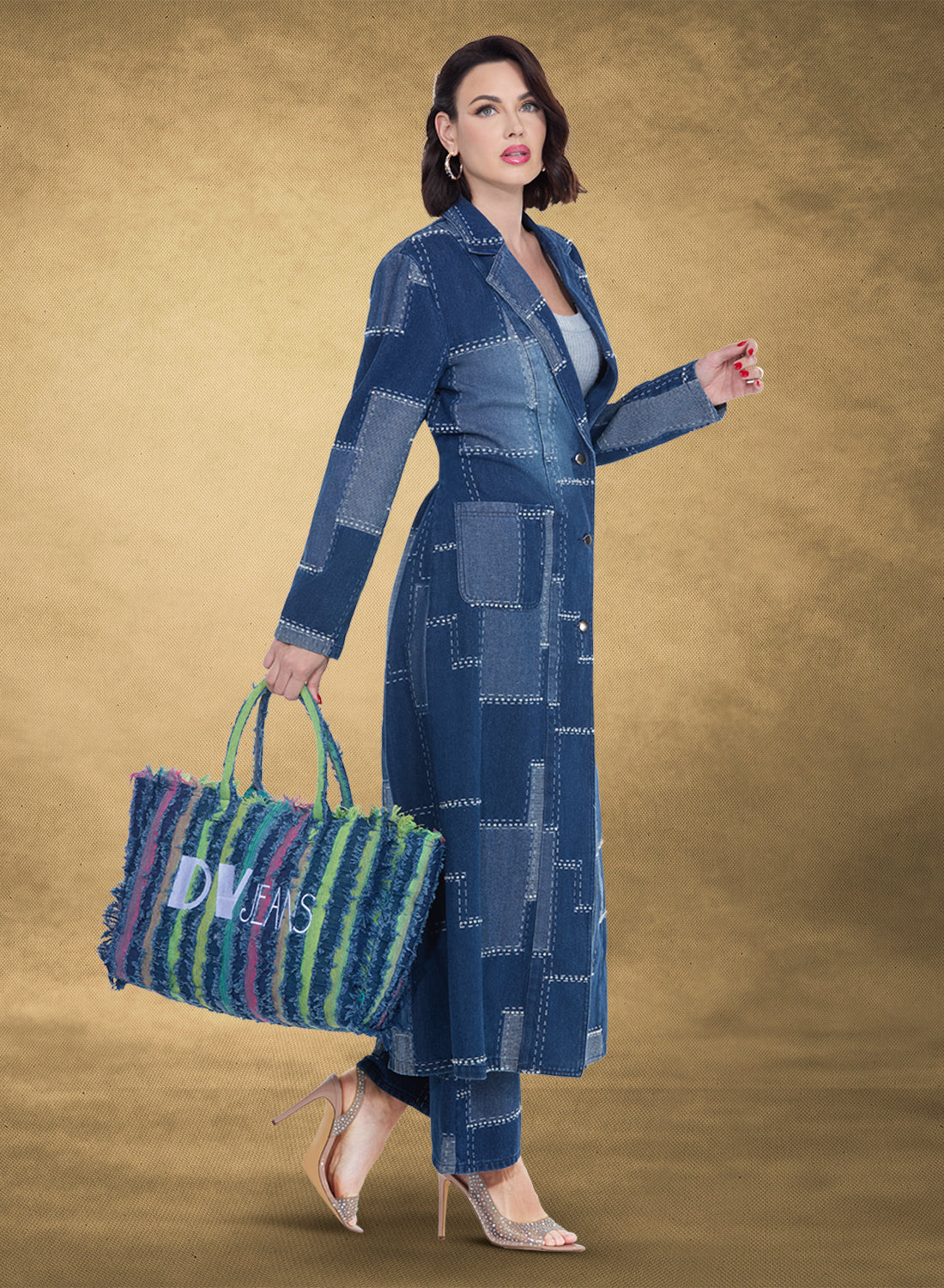 Premium Quality Stretch Denim Trimmed With Grummets & Rhinestones