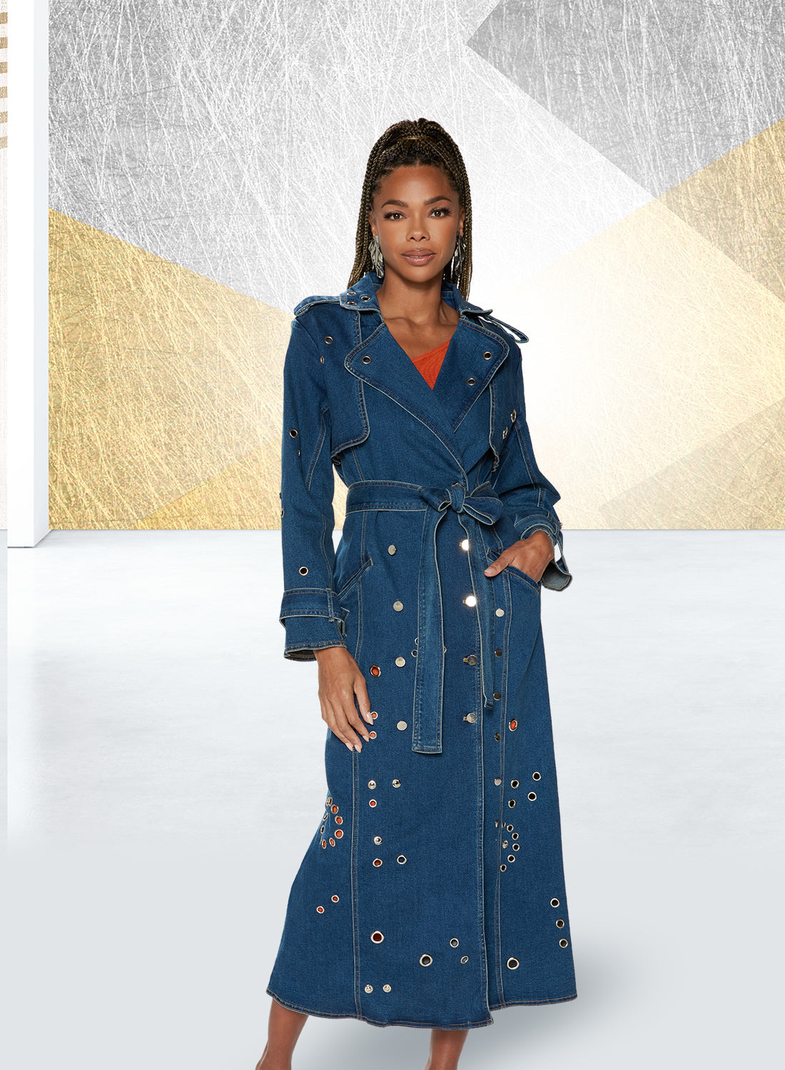 Premium Quality Stretch Denim Trimmed With Grummets & Rhinestones